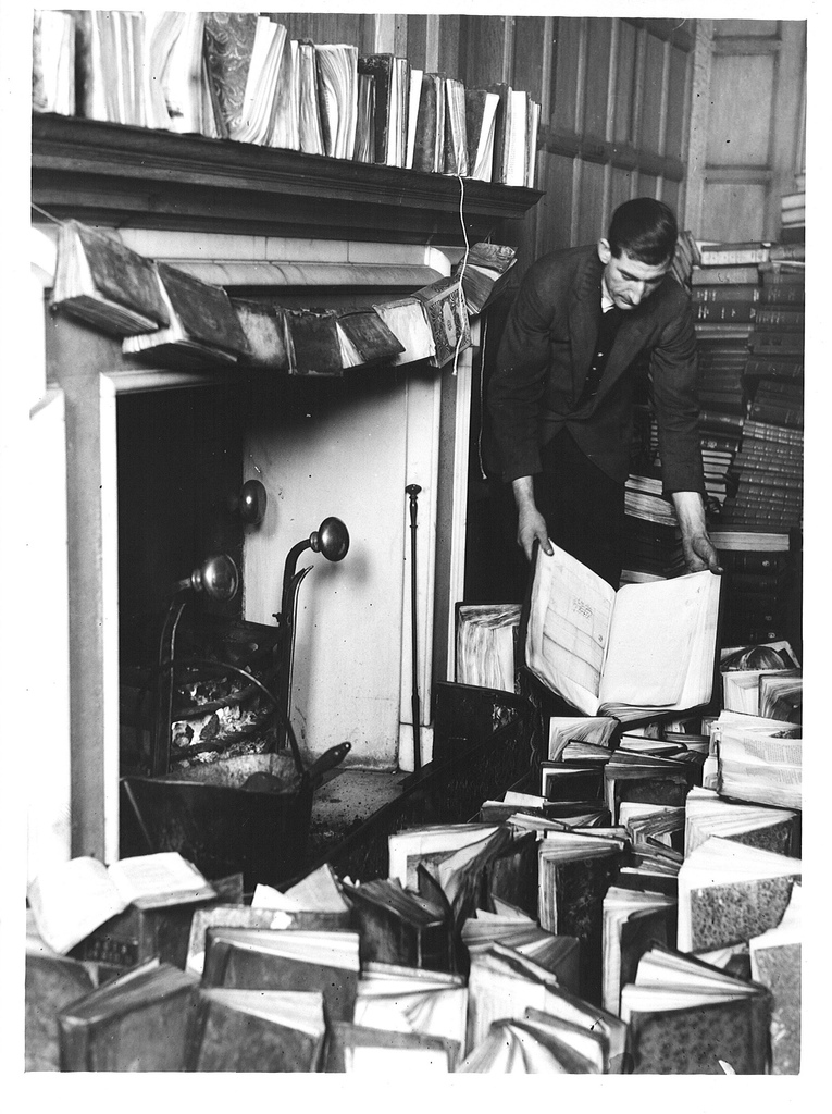 Interior damage to old Library - drying out surviving books (Image © The Inner Temple)